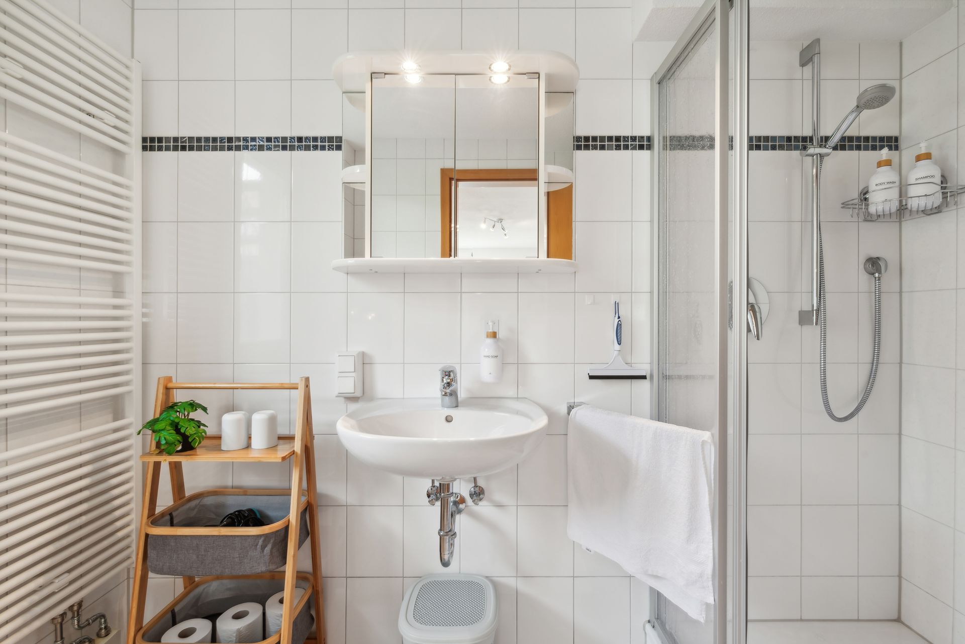 • Badezimmer: Modern und praktisch mit Dusche, WC und einem Waschtrockner – ideal für längere Aufenthalte.